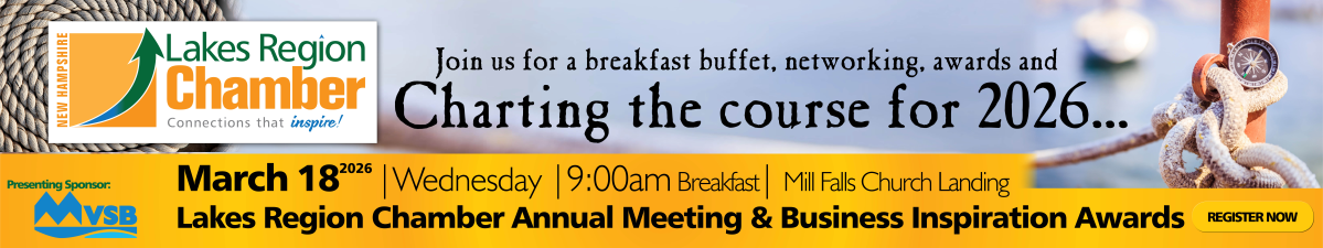 As we look ahead to a new year of opportunity, innovation, and impact, the Lakes Region Chamber invites you to join us for our Annual Membership Meeting & Business Inspiration Awards, where we’ll come together to reflect, celebrate, and set our course for 2026.