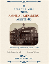 The Belknap Mill Society invites you to the 2026 Annual Members Meeting on Wednesday, March 18, 2026 at 5:00 pm. Refreshments will be served, all are welcome!