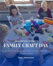 Join us at the Belknap Mill for a drop-in family craft from 11 AM–1 PM. This free, all-ages activity offers a relaxed, creative experience for families to enjoy together!