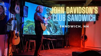7pm is showtime (2pm on Sundays)! The show includes original country/folk songs and backstage stories, special guests and surprises. John will feature songs from his twelve albums, Las Vegas shows, television variety appearances, and his roles in Walt Disney movie musicals. Each song will be set in a different New Hampshire location using our video screen. It’s an evening of comedy, inspiration, and nostalgia for the whole family.