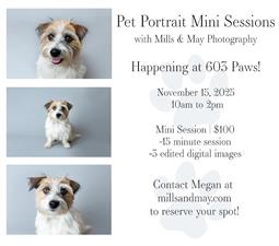 Reserve your spot today. So excited to have Megan from @millsandmayphotography to give all of our pet owners that opportunity to get their fur babies professional photos taken Christmas is comingwhat a great time to get a picture, for that special christmas card. So contact Megan today to book your spot? go to her website millsandmay.com