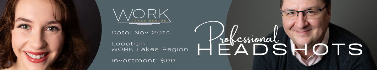 Join us at WORK Lakes Region for a fun, relaxed photo experience designed for professionals, entrepreneurs, and small business owners who want to look confident, approachable, and ready for opportunity.